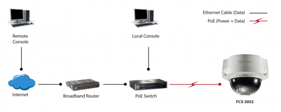 Product Overview The LevelOne FCS-3052 is a 3-Megapixel dome network camera with video resolution of up to 2032x1536. The camera supports H.264/MPEG-4/MJPEG video compressions, making it an efficient and cost-effective means of surveillance for your business. Together with 12 Infrared LEDs and removable IR-cut filter, the FCS-3052 is perfect for delivering low-noise images in total darkness, at a distance of up to 10 meters. No need to install this camera near a power source, power and data are received through a single Ethernet cable using Power over Ethernet (PoE) technology. It is also equipped with one digital input/output (1DI/1DO) for alarm and sensor. In addition, we offer you a free Dynamic Level1DNS™ service, which is very useful if you don’t have a fixed public IP address, and provides you with an easy-to-memorize domain address. The FCS-3052 is indisputably the best choice for 24 hours indoor surveillance of areas such as offices, banks, and retail stores.
