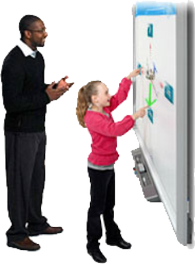 Up to four students can simultaneously write, perform mouse functions, erase, and manipulate and move objects on the interactive whiteboard surface – and no special tools are required. |
